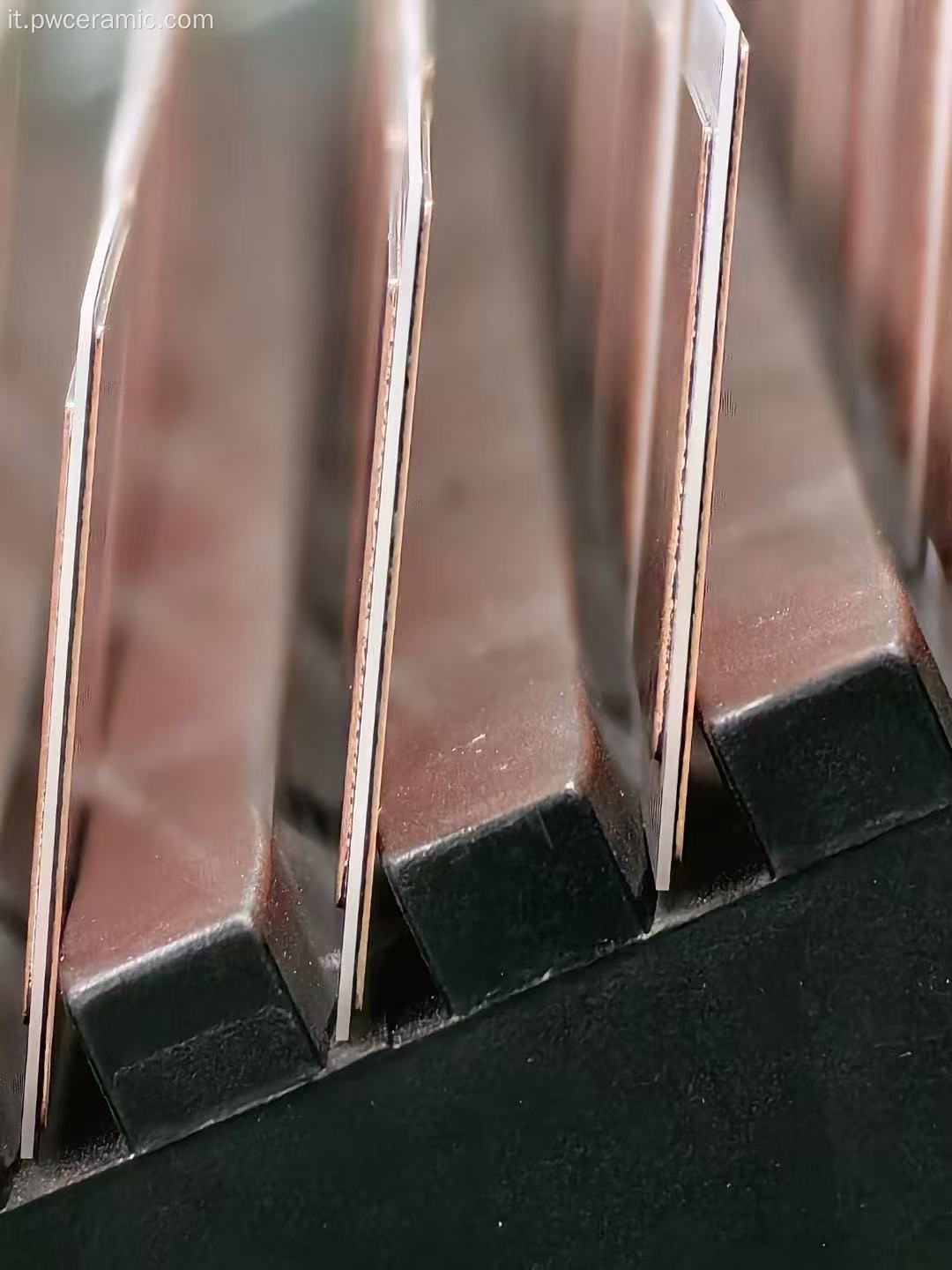 - Brasatura in metallo attivo: brasatura ad alta temperatura in atmosfera controllata per creare il legame rame-ceramico.